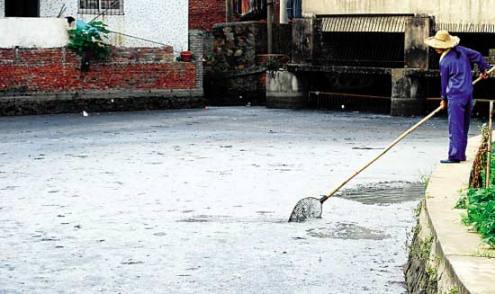 昨晚(1日)7時(shí)許,兩車不合格液態(tài)奶在廣州石井潭村垃圾壓縮站銷毀,壓縮后的液奶包裝袋被運(yùn)往垃圾填埋場(chǎng),但壓縮出來的液態(tài)奶卻被直接排入垃圾站旁的河涌。附近街坊反映,這樣的銷毀工作前晚已有一次,白天溫度升高,牛奶發(fā)酵,河涌?jī)?nèi)散發(fā)出的臭氣讓人難受。