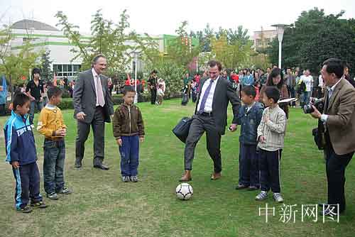 “洋市長(zhǎng)”與社區(qū)孩子們?cè)谝黄?br>