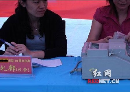 湖北民族學(xué)院七十周年校慶會(huì)場擺放的點(diǎn)鈔機(jī)