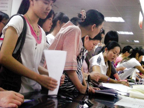 正在門邊填退保申請表的阿麗對記者說:“我們廠很多人都來了,退了錢就回家,暫時不想找工作了!毕癜Ⅺ愡@樣的情況有許多。前來退保的人群中,有來自西鄉(xiāng)不同社區(qū)內(nèi)的企業(yè)員工,退保員工小饒告訴記者,這幾個月以來,她所在的工廠效益很差,好多工人都沒活干,聽說廠里的訂單很少,于是大家就相約辭工,準備退了保就回老家。據(jù)該社保站工作人員講,近幾天退保的人數(shù)突然增多,每天都有逾200人前來辦理退保手續(xù)。而平時很少會有這么多人來集中辦理。