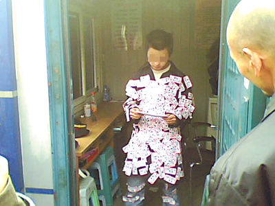昨日下午,記者聯(lián)系上發(fā)帖者“十五阿哥”。他回憶說,拍攝照片的時(shí)間是11月7日上午10點(diǎn)半左右。當(dāng)他和同事經(jīng)過海關(guān)車站對(duì)面的市政監(jiān)察亭時(shí),發(fā)現(xiàn)門口圍滿了人。他湊進(jìn)去一看才發(fā)現(xiàn),一個(gè)“卡娃”被城管懲罰全身貼滿紙膠貼示眾。“太傷孩子的自尊心了!薄笆灏⒏纭狈Q,當(dāng)時(shí)男孩一直低垂著頭不敢面對(duì)人群,而亭內(nèi)幾個(gè)執(zhí)法隊(duì)員卻不聞不問,各自做著自己的事情。