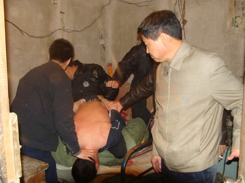 11月20日凌晨2時(shí)許,警方已經(jīng)完成對全部抓捕對象的布控。抓捕條件成熟,指揮部一聲令下,抓捕行動(dòng)同時(shí)開始。犯罪嫌疑人孫景成、安建利、胡軍發(fā)、劉志偉、呂二利等相繼被抓獲。凌晨6時(shí)許,民警將嫌疑人蘇金光抓獲,并在其租住處搜出三把弓弩、五把砍刀、兩把斧頭、一柄魚叉。經(jīng)確認(rèn)這些全部都是作案工具。