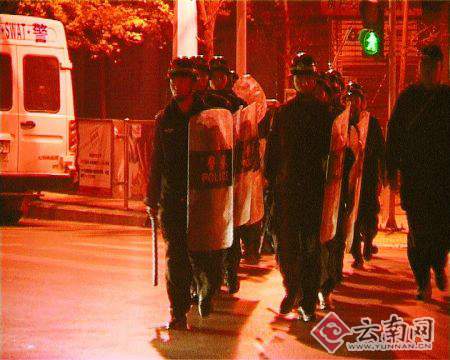 昨天凌晨,一伙不明身份的男子在昆明市寶善街“八點半”酒吧門口聚集許久后,和從酒吧內(nèi)沖出的另一伙人發(fā)生沖突,現(xiàn)場一度十分混亂。昆明市公安局緊急出動百余警力,短時間內(nèi)平息了此次群毆,同時帶回15人進行調(diào)查。