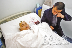 經(jīng)過3小時手術(shù)和24小時術(shù)后觀察,昨日傍晚,大坪醫(yī)院傳來好消息:前日上午不幸被高空墜落的鐵頭叉棍插進(jìn)頭顱的袁正敏,成功度過第一段生命危險期。