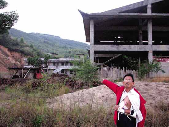 征地項(xiàng)目如期開建,不服氣的丘家厲一直上告!拔医K于在2004年11月1日盼來了區(qū)國土局的停工協(xié)議書,可是工程卻依然照常開工,”丘家厲告訴記者,“直到我找到省國土廳,工程才于2005年9月7日正式停工,可是直到現(xiàn)在,公墓建筑依然沒有拆除,土地也沒有歸還農(nóng)民!