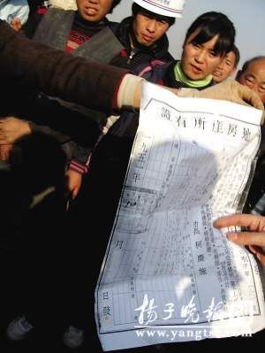挖墓村民拿出土地證。范曉林 任國勇 攝