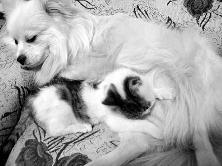 無意中撿回一只剛出生的小貓,竟和家里養(yǎng)的小狗歡歡結(jié)成了“母子”,更讓家住東郊的王先生覺得稀奇的是,這幾天,從未當(dāng)過“媽媽”的歡歡竟有了妊娠反應(yīng),用它自己的奶水喂養(yǎng)起了小貓。