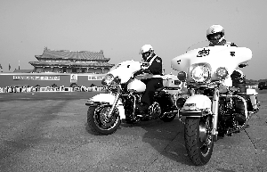 昨日上午,北京市交管局東城交通支隊(duì)帥府園交通隊(duì)三名交警,騎著嶄新的哈雷警用摩托車,開入天安門廣場(chǎng)周邊道路。當(dāng)日起,天安門地區(qū)交警開始騎哈雷巡邏。