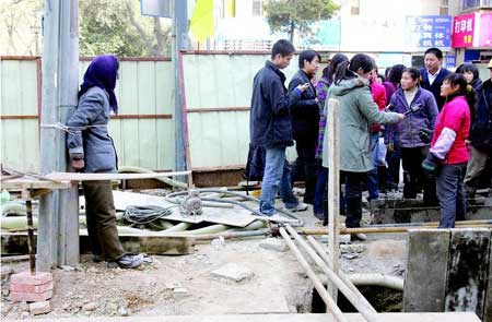 昨日上午9時30分,工地附近圍了許多群眾,一位老先生上前指責,這種私自捆人的行為觸犯了法律,要求工地工作人員給該婦女松綁,一岳姓女工承認,人是她拿電線捆的,要等老板來處理。“為什么不送派出所?”那位老先生質(zhì)問道,此時周圍的群眾開始議論紛紛。而岳姓女工一直在說,“老板不來,就不能放人!