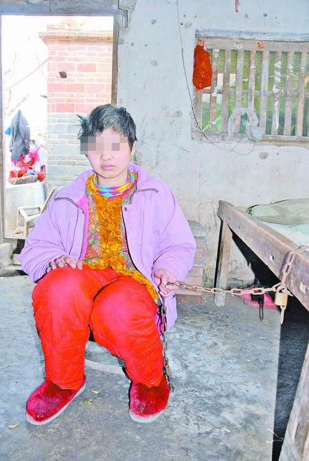 南陽市新野縣沙堰鎮(zhèn)南村二組患病的19歲少女馬健迪犯病時(shí)見人打人,見狗殺狗,難以控制。犯病少女曾毆打過附近村民及兒童100多人,殺死貓狗10多只,家人怕她再生事端,無奈之下買來拴狗鐵鏈,整日將其拴在臥室的床頭。