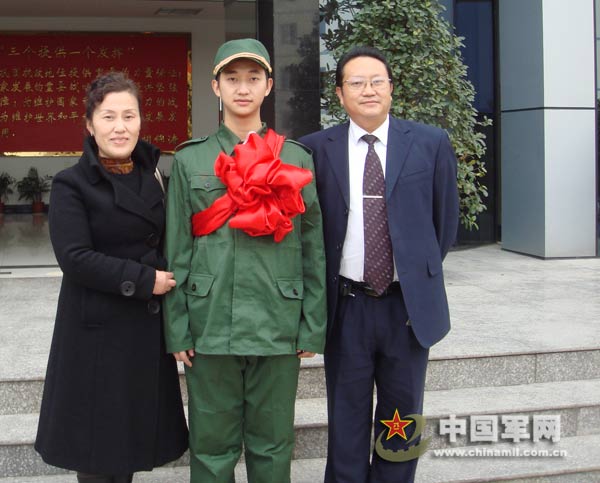12月11日,在“5·12”大地震中被困120多小時后成功獲救的蔣雨航,穿上綠軍裝,戴上大紅花,成為一名光榮的新兵。