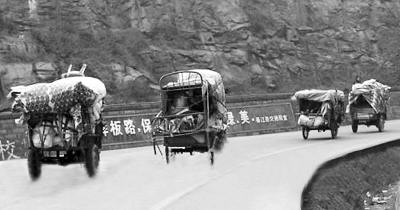 為什么不乘火車或汽車?秦師傅說舍不得:舍不得車費,舍不得花費數(shù)千元錢買來的賴以為生的三輪摩托車,舍不得丟掉任何一件家什……于是,眾人商議:開車回家。為搞清楚線路,臨行前,幾人專門買了張地圖。經(jīng)計算發(fā)現(xiàn):從汕頭到老家,全程逾3000公里。