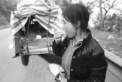 累還只是一小問題,吃飯、睡覺更難解決。為減少開支,每人一天最多吃兩頓飯。臨行前,每家都準備了幾箱方便面,不過,因為沒有熱水,方便面大都被干啃下肚。睡覺是走到哪睡到哪——男人讓出車廂在公路邊上打地鋪,女人小孩在車廂內(nèi)將就。洗臉、洗頭,更是奢望。十多天下來,每個人的臉和手都已干裂,風刮得生痛。