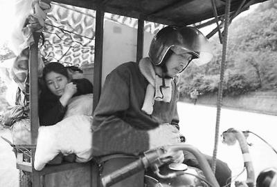 摩托車沒有駕駛室,男人們不得不把棉衣包在頭上抵御風寒。坐在“車廂”內(nèi)的人也不好過,廂體狹小,整日蜷曲得腰酸腿疼,顛簸更是家常便飯!斑@趟回家比種田還苦!鼻貛煾档钠拮、42歲的肖大姐揉著頭上剛被撞出的大包,有些哽咽。