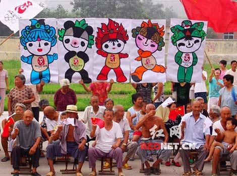7月28日,在河南省輝縣一小山村也舉辦了一場(chǎng)別開生面的鄉(xiāng)村版“奧運(yùn)圣火傳遞”。簡(jiǎn)樸的村民們手拿自制的簡(jiǎn)易火炬互相傳遞,神情欣喜。事件被網(wǎng)友拍下上傳到網(wǎng)上,無數(shù)網(wǎng)友投來贊許的“頂”字,并為這種充滿濃厚鄉(xiāng)土氣息的奧運(yùn)激情所感動(dòng)、折服。