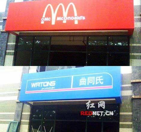 “曲同氏(假冒屈臣氏)、必勝糊(假冒必勝客)、李明(假冒李寧)、巴克星(假冒星巴克)、哈根波斯(假冒哈根達(dá)斯)……”一條掛滿“山寨”招牌的商業(yè)街驚現(xiàn)南京文安街,這條被網(wǎng)友稱為史上最雷的“山寨一條街”,于掛出招牌后沒幾天在工商部門的干預(yù)之下消失了。(11月9日 紅網(wǎng))
