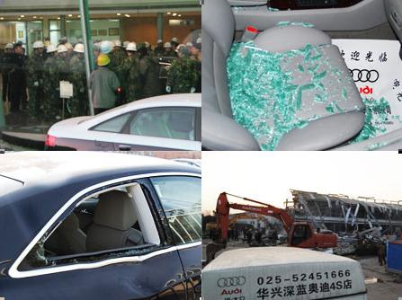 在隨后的7個多小時中,這些人砸碎玻璃,用事先準備好的乙炔槍切斷奧迪店的外鋼支架,又在店中又砸又搶。當時店中有40多名值班的員工,有的被直接打出、趕出店外,有的則嚇得躲進展廳內(nèi)的展車。