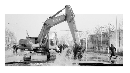 挖掘機(jī)正在搶修。 記者 孫秉志 攝