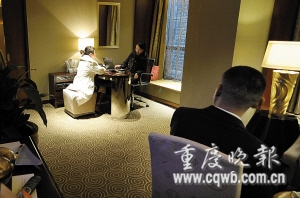 下午3點半,記者向接聽電話的女子表明身份。一位姓吳的男子將記者請進酒店8樓一個房間。