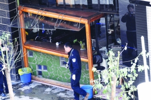 “我當(dāng)時(shí)聽到‘砰’的一聲巨響,接著看到一些碎玻璃飛到了保安室的門口”,楊谷平趕緊跑出去查看,看到咖啡吧后面右側(cè)的衛(wèi)生間窗戶冒出一股濃煙,但是沒有明火,而左側(cè)的廚房玻璃則完好無(wú)損。楊谷平立即與小區(qū)負(fù)責(zé)修理的物管一起,從前門沖進(jìn)咖啡吧,進(jìn)門看到屋里已經(jīng)濃煙彌漫,收銀臺(tái)的服務(wù)員正在驚慌地?fù)艽驁?bào)警電話,酒吧的負(fù)責(zé)人則束手無(wú)策地站在濃煙外圍。
