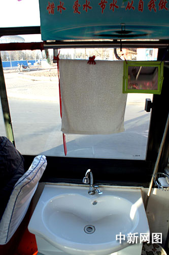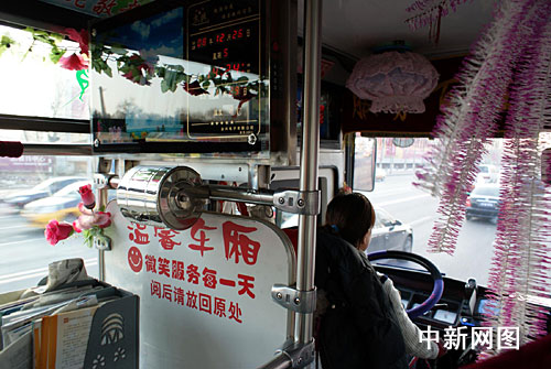 “接新車前,我就有把車廂裝扮得像自己家一樣的想法。現(xiàn)在,我的車上已經(jīng)布置了很多小設(shè)備,比如鏡子、木梳和洗漱池,都是給一些和我一樣愛美的女士準(zhǔn)備的。夏天的時(shí)候她們可以在乘車的過程中照照鏡子,打扮打扮自己!闭f起自己最滿意的創(chuàng)意布置,該公交車的司機(jī)王女士這樣告訴記者。