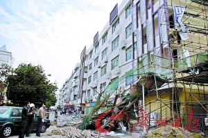昨日10時(shí)40分許,位于深圳市南山區(qū)蛇口公園路一在建工地的腳手架發(fā)生坍塌,5名工人被埋,共造成6人受傷,其中4人傷勢(shì)較重。