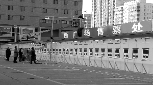 經(jīng)過5天房屋搭建和設(shè)備調(diào)試,昨日,北京西站北廣場西側(cè),由社會停車場改造的臨時售票處啟用。