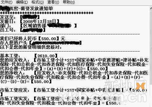 這位叫“葉子的憂郁”的網(wǎng)友首先曬出了自己的工資條,并加以解釋:“我基本工資是2610元(固定)。但是經(jīng)濟(jì)危機(jī)以后公司就想盡辦法克扣工資,要不就是提高任務(wù)量逼你走人,萬(wàn)萬(wàn)沒(méi)想到承諾固定的工資,一下子變成了550元。 ”