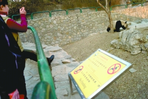 動(dòng)物園工作人員表示,鑒于動(dòng)物園曾發(fā)生過游客跳入大熊貓運(yùn)動(dòng)場被咬事件,園方已安排動(dòng)物展示時(shí)專人看護(hù),并在多處多角度設(shè)置了警示牌、提示牌。