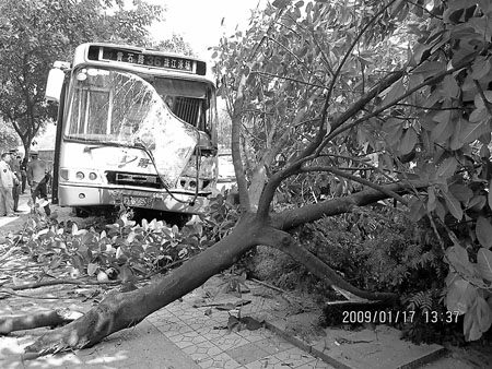 一位目擊者告訴記者,車禍發(fā)生后,36路車是與同方向開行的66路車發(fā)生追尾撞的,66路車“傷情”較輕,已經(jīng)被交通拯救車拖走。而36路連續(xù)發(fā)生碰撞后,被卡在裸露在人行道上的樹根上,再加上該肇事車駕駛室嚴(yán)重?fù)p壞,善后處理工作難度較大,需要時間吊轉(zhuǎn)。