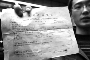 “我覺得銀行應(yīng)該有責(zé)任!眲⑾壬f,這是第一次從自動取款機(jī)上取到假鈔。昨日,銀行經(jīng)理告訴他,以銀行的技術(shù)不可能出現(xiàn)這種問題,并將劉先生的假鈔收繳了。 (記者 葉婧)