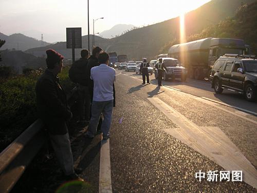 當(dāng)日下午16時30分,位于京珠高速公路廣東韶關(guān)段北行K51公里處,18名農(nóng)民工集體走上高速路面,導(dǎo)致北行車流被堵。京珠高速交警大隊接報后,立即將情況上報韶關(guān)市公安局和交警支隊,同時派出警員緊急趕赴現(xiàn)場處置。