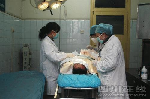 目前,由于肇事者傷情較重,無法說話,他們也無法聯(lián)系到他的家人和朋友。經(jīng)過初步診斷,肇事者甲狀腺斷裂,下頜部 有深達(dá)3厘米的刀傷。劉展說,甲狀腺斷裂是最重的傷,現(xiàn)在當(dāng)事人無法說話,但經(jīng)過搶救不會危及生命!敖酉聛,他 還需要住院觀察。(來源:四川在線-天府早報(bào))