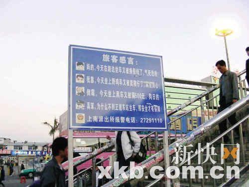 豎于沙井客運(yùn)中心附近,工作人員稱(chēng)只為提醒旅客不受騙