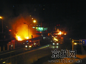 今天凌晨5時(shí)許,(北京市)通州區(qū)楊莊北方紅旗機(jī)電市場(chǎng)路口一煙花爆竹銷售點(diǎn)發(fā)生火災(zāi),大火將現(xiàn)場(chǎng)所有鞭炮以及攤主的一輛銀白色面包車全部燒毀,燃燒的鞭炮還將30米開外馬路對(duì)過(guò)的草堆點(diǎn)燃,60名消防員撲救了近一個(gè)小時(shí)才將大火撲滅,現(xiàn)場(chǎng)未發(fā)現(xiàn)人員傷亡。