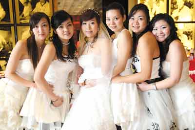 “1,2,3,笑口常開!”昨天上午10點左右,在中華坊附近一大酒店外,5個打扮得如花似玉的伴娘正拉著新娘照相。原來,這6個美女情同金蘭,現(xiàn)在其中一個出嫁,由于5個都吵著要當伴娘,新娘難取舍,最后干脆讓5個好友全當伴娘,陪自己出嫁。