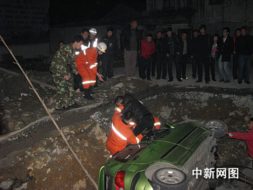 記者在現(xiàn)場(chǎng)看到,該輛綠色雪佛蘭轎車(chē)側(cè)翻在施工大井里,大井不少建筑鋼筋被折彎,一架竹梯也被折斷,一名男子被困在駕駛室內(nèi),現(xiàn)場(chǎng)凌亂不堪,道路上的警示圍墻被撞了個(gè)大洞,還清晰可見(jiàn)圍墻上的“注意安全,道路施工,禁止通行,請(qǐng)繞行”等警示標(biāo)語(yǔ)。