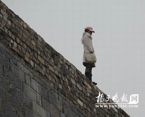 3日上午10點(diǎn),南京東水關(guān)城墻上,一名徐州來(lái)寧的姑娘因?yàn)楦星榧m葛一時(shí)想不開(kāi)而欲跳城墻,后被民警以及男友家人勸說(shuō)解救下來(lái)。