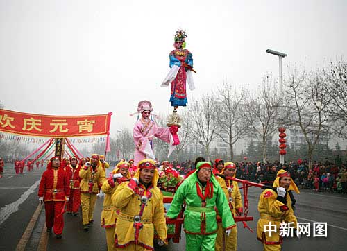 中新網(wǎng)周村2月9日電(記者 鞠成利 楊東亮 通訊員 王帝)今天上午,百年商埠山東省淄博市周村區(qū)元宵節(jié)民間藝術(shù)展演的現(xiàn)場(chǎng)熙熙攘攘,熱鬧非凡。踩高蹺、威風(fēng)鑼鼓、舞龍燈,以及地方特色周村芯子……來(lái)自周村區(qū)4個(gè)街道辦事處20多個(gè)社區(qū)的民間藝術(shù)表演隊(duì)伍紛紛拿出自己的看家本事,為全區(qū)百姓帶來(lái)一場(chǎng)聲勢(shì)浩大、喜氣洋洋的元宵節(jié)民俗盛宴。