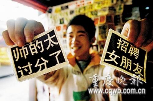 老板稱,秀標(biāo)的發(fā)明,源自一年前一時(shí)靈感突發(fā)。他們通過網(wǎng)絡(luò)收集各種新奇、出位的標(biāo)語,印到方塊粗布上出售,生意十分紅火,僅元宵節(jié)一天就賣出近百個。據(jù)透露,最雷人的“‘求一夜情,管飯’的秀標(biāo),每月要賣出10多個,顧客全是男性!眲⑽目榻B說,除“求一夜情”外,“至今單身”、“招聘女朋友”這種類型的也賣得特別好。他稱,出格、露骨點(diǎn)的標(biāo)語,男性顧客比較多,偶爾還有夜店等娛樂場所前來批發(fā);而女性顧客就要含蓄得多,喜歡買“超級美女證”或“單身美眉”。