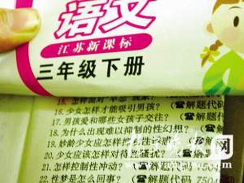 而對于在低年級書本中出現(xiàn)涉性的問題,該人士表示自己并不清楚,可能是相關機構自己添加的。隨后他又補充說,這些話題其實是和素質教育有關系的,在學校里學生是學不到的,因此就作為輔導材料的補充,多增加點知識也是好事。