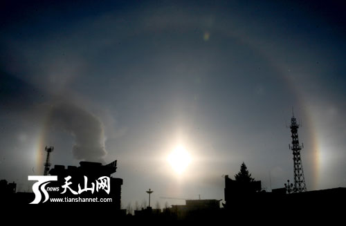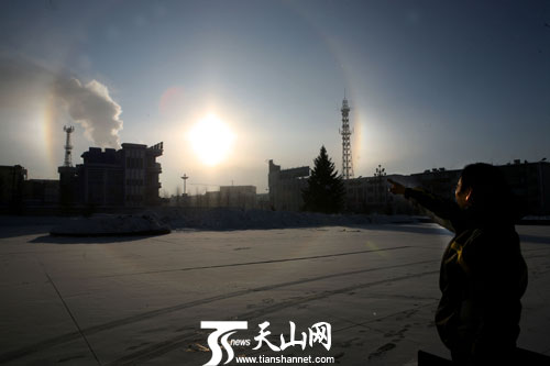 2月22日上午,在新疆富蘊縣拍攝的“三個太陽”現(xiàn)象。當(dāng)日,富蘊縣天氣,晴, -15 ℃ /-30℃ 。