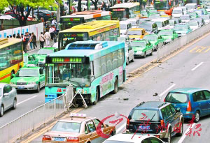昨日(7)中午12時(shí)許,在廣州天河區(qū)崗頂公交車站前等車的趙先生目睹了電影中才會(huì)發(fā)生的一幕:一輛298路公交車猛地沖向馬路中間的護(hù)欄,滑行了近30米后才停下來。強(qiáng)大的沖擊力將十余個(gè)鐵制護(hù)欄連根鏟起。車上當(dāng)時(shí)載有四五十名乘客,但只有司機(jī)受傷。據(jù)了解,該事故的起因竟是區(qū)區(qū)6元的車資找零。