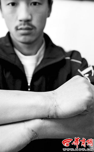 吳明的遭遇在丹鳳中學(xué)并非秘密,很多人都看到了他手上的傷。3月13日上午,記者在丹鳳中學(xué)采訪(fǎng)時(shí),有幾名教職工悄悄問(wèn)記者:“你們見(jiàn)過(guò)吳明嗎?去采訪(fǎng)采訪(fǎng)他吧。”