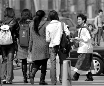 這家比薩店位于北京第二外國語學(xué)院北門,扮成“小沈陽”的服務(wù)員在北門十字路口發(fā)傳單,許多學(xué)生從他身邊走過時(shí)紛紛回頭!斑h(yuǎn)看還挺像的”,二外的孫同學(xué)說,自己和同學(xué)進(jìn)去試吃了傳單上的“蘇格蘭打鹵面”,感覺和西餐中的意大利面差不多。