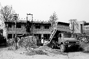 建設(shè)二層樓的材料新舊參半,一般一層使用舊磚,二層使用新磚,連地基都不是徹底挖掘,原來房間地基沿用至新房,有居民說這樣比較節(jié)省。