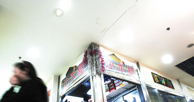 昨日中午,記者在現(xiàn)場(chǎng)發(fā)現(xiàn),其主要通道和許多門市的墻面上開始清晰地出現(xiàn)大小不一的裂縫!案杏X(jué)像每天都在經(jīng)歷地震!贝笃航鹣笫兰业叵律虉(chǎng)C區(qū)105號(hào)商戶趙庭明指著頭頂附近的一條裂縫說(shuō),前天上午,巨響突然傳來(lái),一位恰巧經(jīng)過(guò)的老太以為發(fā)生地震嚇得當(dāng)即蹲倒在地。