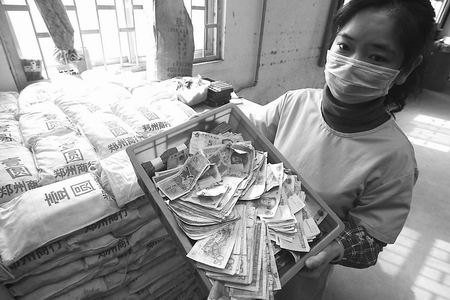 “這些全是假幣!”昨天,在鄭州市公交總公司點(diǎn)鈔大廳,一個個白色布袋堆放在墻角,每個布袋上都標(biāo)有“壹圓”字樣。一位趙姓工作人員說,每個布袋里都裝有2000個一元假硬幣,重10余公斤,一共288袋。記者注意到,在堆放的假硬幣上面,擺放的塑料筐里裝著面額不等的“鈔票”,“它們也都是假幣”。