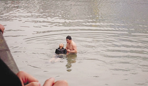 網(wǎng)友zcxyh介紹說(shuō),出事地點(diǎn)位于常州市中心附近一座比較著名的公園——蘭園旁的白蕩浜河,事發(fā)當(dāng)天,見(jiàn)到女子跳河后,這位和女兒在公園散步的男子二話不說(shuō),脫下衣褲就跳入冰冷的河水中,雖然救人的中年男子在水中凍得直打哆嗦,但他還是堅(jiān)持游到輕生女子跟前,不顧一切地把女子往岸邊拉。警方趕到時(shí),救人的中年男子把警方投遞來(lái)的繩索和救生圈套在女子身上,成功地將女子營(yíng)救上岸后,中年男子也不多話,穿起衣服后悄悄地走了!斑@一幕讓我感動(dòng),因此,趕緊拿出相機(jī),拍攝了整個(gè)過(guò)程!