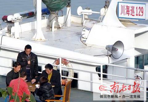 調(diào)查情況是:2月12日,海事囤船和海巡艇的值班人員是彭某和馬某兩人,邵某和張某輪休。當(dāng)天下午,邵某的4位親友來到船上看他,因天氣好提出打牌。于是4位親友在船上打了約2小時的麻將,邵等人在旁邊觀看。3月13日,值班人員是張和邵,彭和馬輪休,下午3時左右,彭的兩位戰(zhàn)友和一位女同志共3人來到船上找彭某,也提議打一會兒牌,隨后,彭和他的兩位戰(zhàn)友在船上斗了約2小時的地主,邵等人在旁邊觀看。